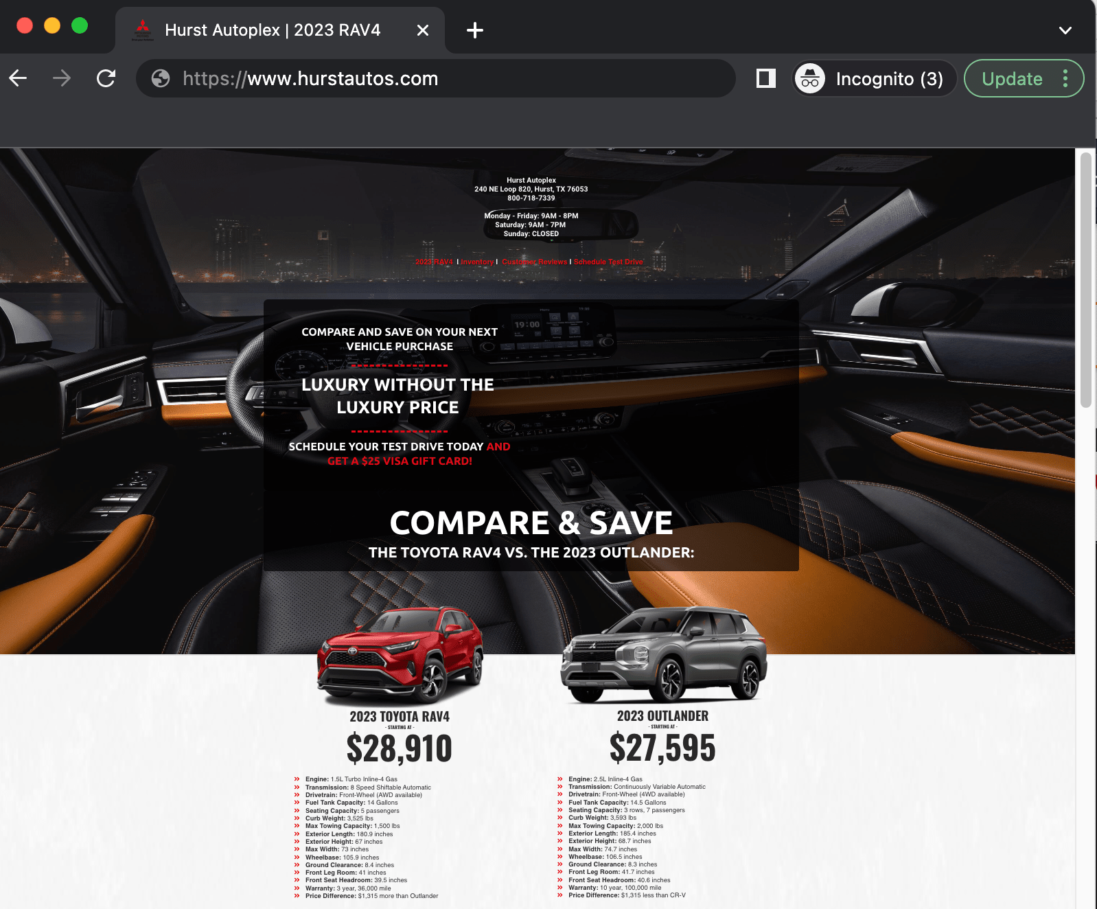 Next, we create your dealership a custom landing site with URL. These high converting landing sites are used for your Facebook/Meta and Google Advertising.